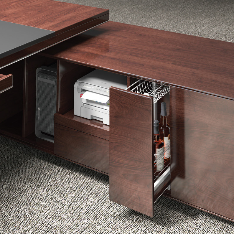 配置有打印机、保险柜、冰箱、多功能收纳柜、文具盒等
