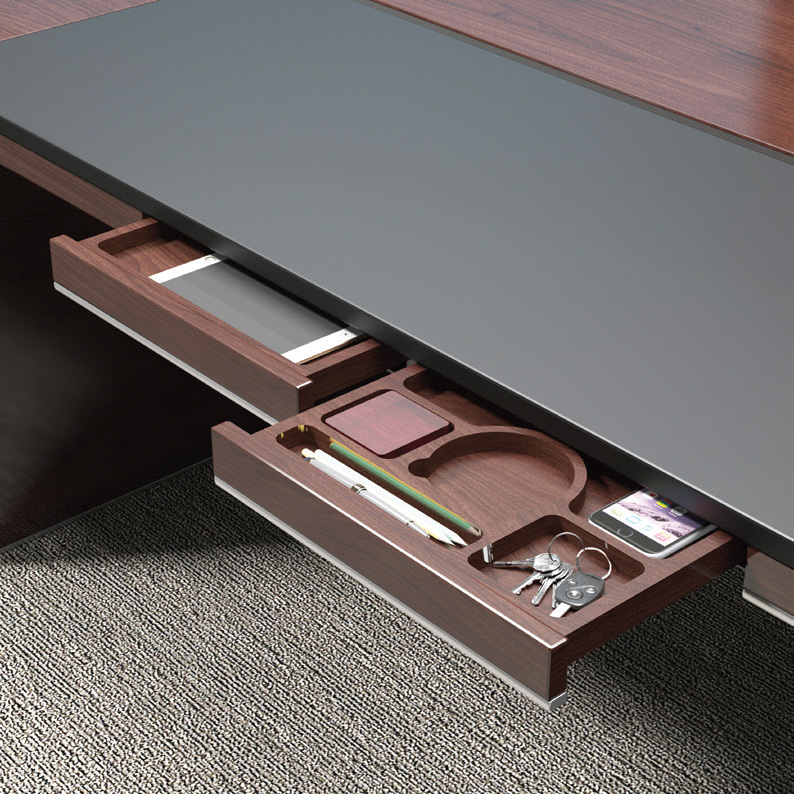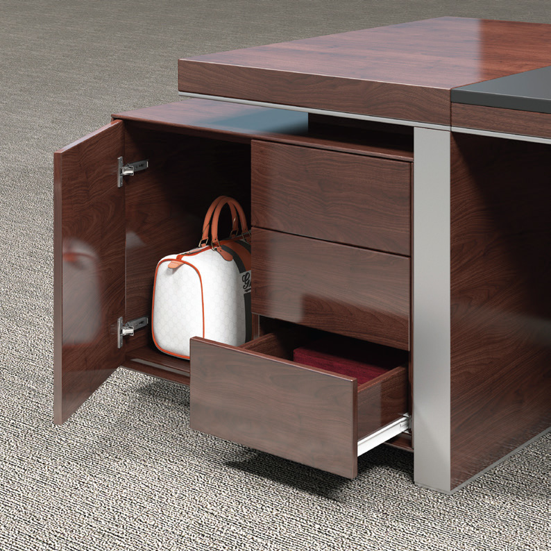 黑色皮质与胡桃木温润结合,色调沉稳而大气,线条遒劲而有力。